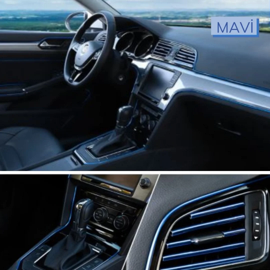 Mey İthalat® Mavi Araba OtoTrim Dekorasyon Şeridi Kauçuk Elastik Kolay Kurulum 5 metre Şerit Bant