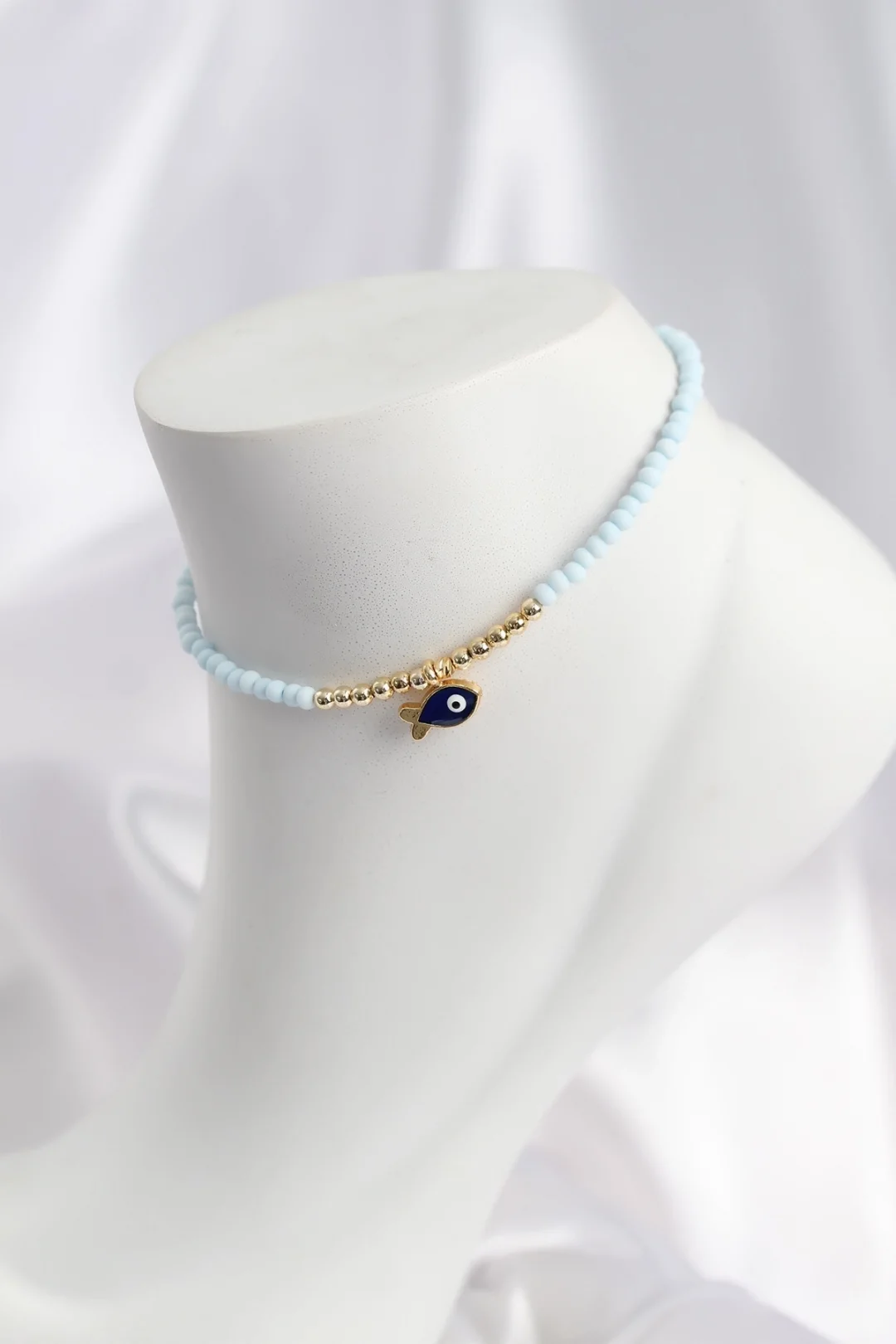 Mey İthalat® Mavi Renk Boncuklu Balık Figürlü Halhal