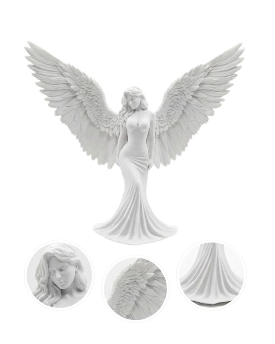 Melek insan figürlü 3D dekoratif heykel biblo, zarif tasarımı ve sanatsal görünümü ile ev dekorasyonunda dikkat çeken estetik dekoratif objelerden biridir. Kanatlarını iki yana açmış melek figürü, huzur, koruma, zarafet ve saflık gibi anlamları temsil eden güçlü bir semboldür. Bu nedenle melek figürlü dekoratif ürünler yaşam alanlarında hem anlamlı hem de estetik bir atmosfer oluşturmak için sıklıkla tercih edilir. Modern tasarım anlayışı ile üretilen bu 3D dekoratif heykel, bulunduğu ortama zarif bir dokunuş kazandırır.3D baskı teknolojisi ile üretilmiş olan bu dekoratif biblo, detaylı kanat yapısı ve akıcı figür tasarımı ile oldukça dikkat çekici bir görünüm sunar. Melek figürünün geniş kanatları ve zarif duruşu ürüne sanatsal bir karakter kazandırırken aynı zamanda bulunduğu ortamda estetik bir odak noktası oluşturur. Elbisenin akıcı formu ve figürün dengeli duruşu dekoratif heykelin bir sanat eseri gibi görünmesini sağlar.Dekoratif melek figürlü heykel özellikle salon dekorasyonunda oldukça şık bir tamamlayıcı aksesuar olarak kullanılabilir. Konsol üzerinde, şömine rafında, kitaplık rafında veya sehpa üzerinde sergilendiğinde bulunduğu ortama huzurlu ve estetik bir atmosfer kazandırır. Aynı zamanda giriş alanlarında veya çalışma odalarında da dekoratif bir obje olarak kullanılabilir.Beyaz renkli sade tasarımı sayesinde modern dekorasyon, minimalist dekorasyon ve klasik dekorasyon stilleri ile uyum sağlayabilecek bir görünüme sahiptir. Bu özellik ürünü farklı dekorasyon tarzlarına sahip yaşam alanlarında kullanılabilir hale getirir. Açık renkli yüzeyi sayesinde bulunduğu ortamda ferah ve zarif bir görünüm oluşturur.Dekoratif melek insan figürlü 3D heykel biblo aynı zamanda anlamlı bir hediye alternatifi olarak da tercih edilebilir. Ev hediyesi, yeni ev hediyesi, doğum günü hediyesi veya özel gün hediyesi olarak verilebilecek estetik bir dekoratif üründür.Modern tasarımı, zarif figürü ve detaylı kanat yapısı sayesinde melek figürlü 3D dekoratif heykel biblo yaşam alanlarında huzur veren ve estetik bir atmosfer oluşturan şık bir dekoratif aksesuardır.