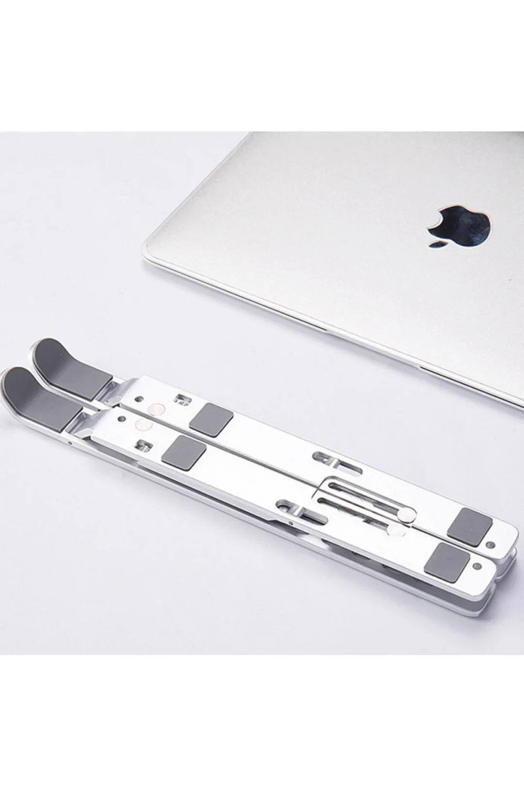 ND02 Alüminyum Manyetik Katlanabilir Ayarlı Laptop Standı Dizüstü bilgisayar standı 10 ila 15,6 inç arasındaki neredeyse tüm dizüstü bilgisayarlarla uyumludur Yüksekliğini dilediğiniz gibi ayarlayabileceğiniz 6 seviyesi bulunmaktadır Kullanıcı dostu tasarıma sahiptir Yüksek mukavemetli alüminyum alaşımlı malzeme ile oldukça güvenilir bir üründür Dizüstü bilgisayarınız için daha fazla güvenlik elde etmek amacıyla kaymaz silikon pedler bulunmaktadır Katlandığında 9,45*1,73 inç boyutuna kadar küçülebilir
