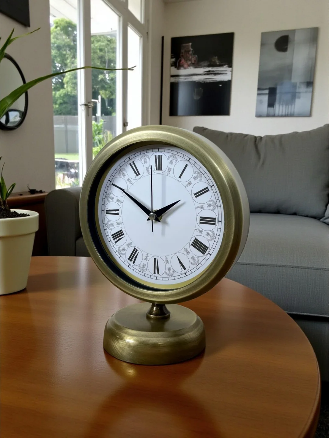 Klasik çizgileri modern detaylarla birleştiren bu eskitme gold masa saati, bulunduğu ortama sofistike bir hava katar. Beyaz zemin üzerinde yer alan desenli kadranı ve Roma rakamlarıyla dikkat çeken tasarımı; salon, çalışma odası, ofis, konsol üstü ve vitrinler için kusursuz bir tamamlayıcıdır. 25 x 20 cm ölçüsü sayesinde hem yer kaplamaz hem de dekorasyonda güçlü bir duruş sergiler.