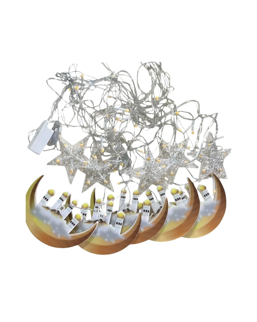 Ramazan ayının ruhunu evinize taşımak isteyenler için tasarlanan bu LED ışık, hem dekoratif hem de tasarrufludur. A++ enerji verimliliği sayesinde uzun süre açık kalsa bile düşük elektrik tüketimi sağlar. 3 metre uzunluğu ile perde, pencere ve duvar gibi alanlarda dengeli bir görünüm sunar. Ev içi kullanım için uygun yapısı ile iftar ve sahur sofralarına eşlik eden sıcak bir ambiyans oluşturur. Hilal ve yıldız figürleri Ramazan ayının simgesel dokusunu yansıtır. Şık ve sade tasarımıyla her ev dekorasyonuna kolayca uyum sağlar.
