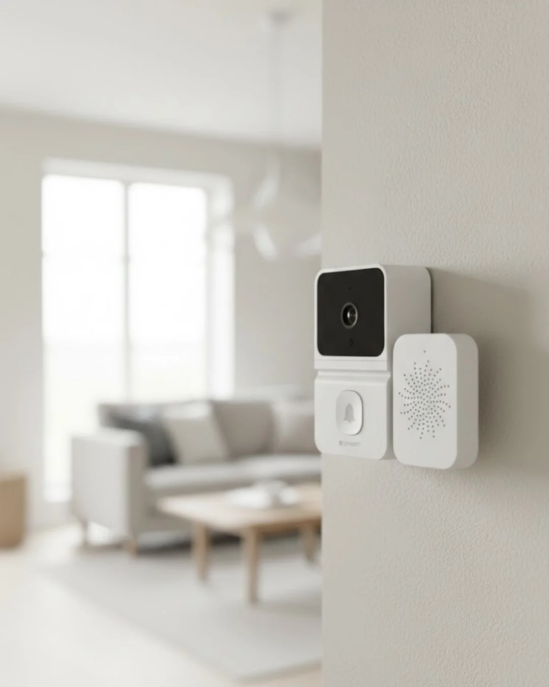 Mobil uygulama destekli akıllı kapı zili, anlık bildirim ve canlı izleme özellikleriyle giriş güvenliğini üst seviyeye taşır. Şarj edilebilir bataryası uzun süreli kullanım sağlar.Kolay kurulum, kablosuz tasarım ve geniş açı lens ile modern güvenlik çözümüdür.
