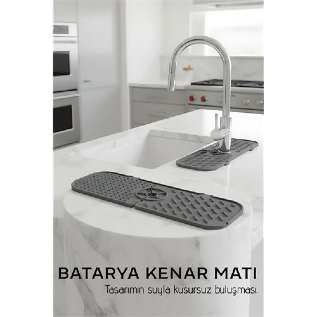 Sadece musluk kurutma matı olarak değil, diş fırçanızı, bardağınızı, el sabununuzu ve bulaşık sabununuzu koyabileceğiniz tasarımda üretilmiştir.