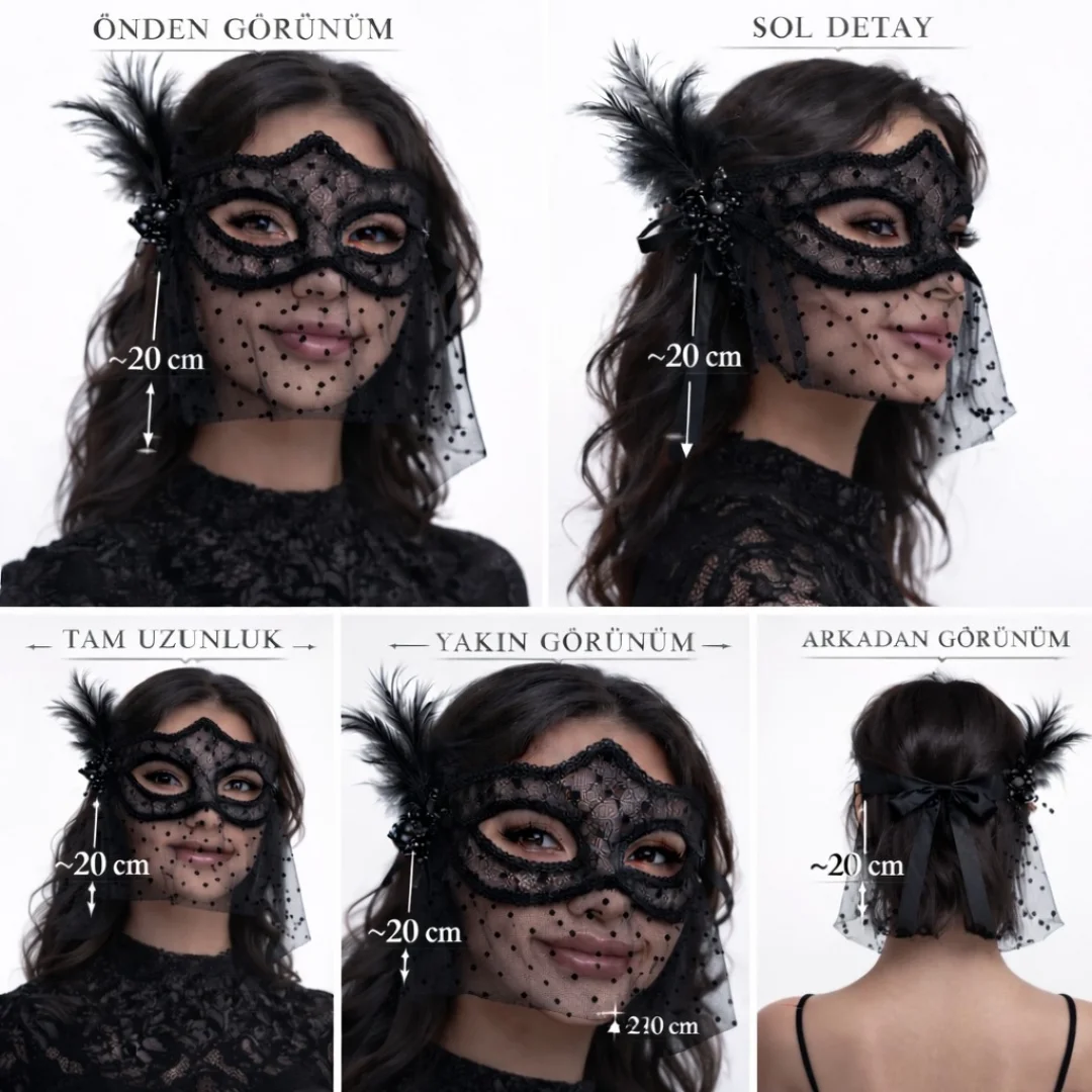 Maskeli balo, konsept parti, doğum günü organizasyonları, özel davetler ve kostüm kombinleri için mükemmel bir tamamlayıcıdır.