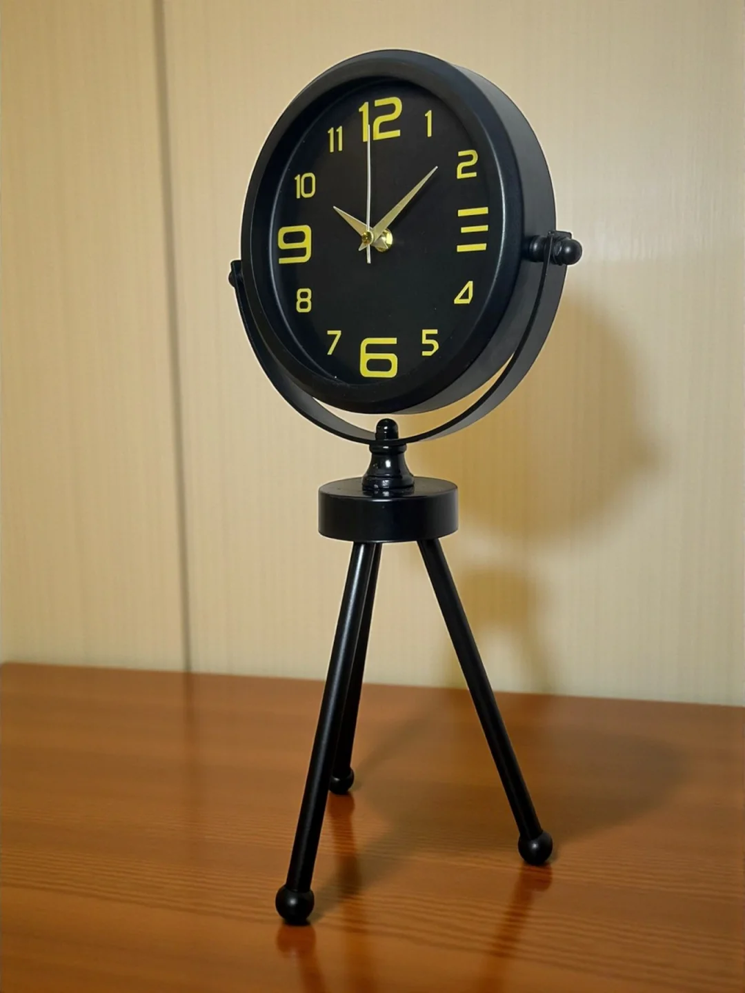 45 x 25 cm ölçülerindeki bu modern siyah üç ayaklı masa saati, minimal tasarımı ve güçlü duruşuyla her ortama şıklık katar. Gerçek cam korumalı kadranı sayesinde net görüntü ve uzun ömürlü kullanım sağlar. Tamamen metal gövdesi ve tripod ayak yapısıyla sağlam, dekoratif ve premium bir görünüm sunar. Sessiz akar saniye mekanizmasıyla ev, ofis ve çalışma alanlarında rahatsızlık vermeden kullanılabilir.