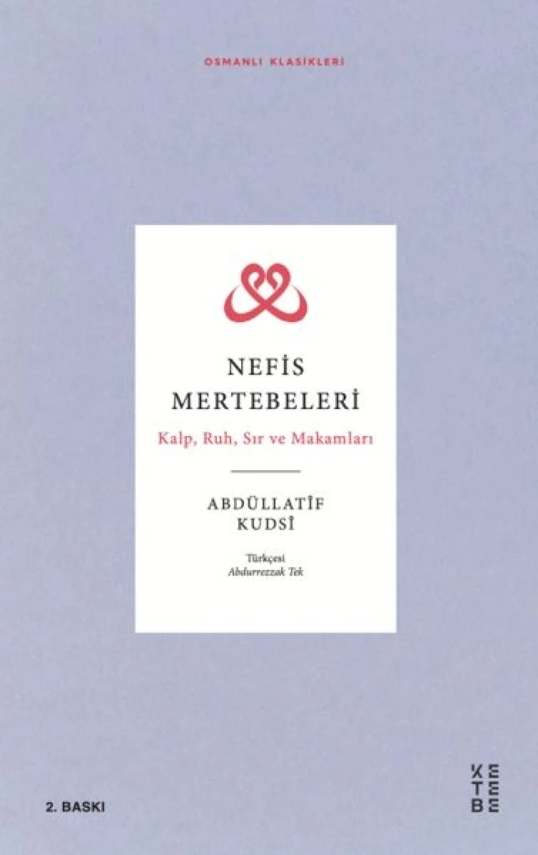 Ürün Adı: Nefis Mertebeleri Ürün Kodu: 9786257587914 Yazar: Abdüllatif Kudsi Basım Yılı: 2021 Kapak Türü: Karton Kapak Sayfa Sayısı: 80 Kağıt Cinsi: 2. Hamur Çevirmen: Abdurrezzak Tek
