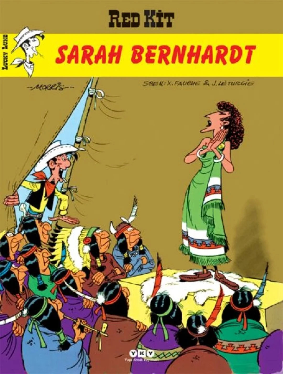 Red Kit’in 62. sayısı olan 1982 yılına ait Sarah Bernhardt’ı Morris çizmiş, X. Fauche ile J. Léturgie yazmış. Zaman zaman yapıldığı gibi, öykü gerçek bir şahıs ile abartılmış gerçek olaylar üzerine kurulmuş: “Altın Ses” olarak bilinen Fransız tiyatro oyuncusu Sarah Bernhardt’ın ilk ABD turnesi. Bernhardt’ın ABD’deki gösterilerinin sorunsuz gerçekleştirilebilmesi için hükümetçe görevlendirilen Red Kit’i bekleyen zorluklar, bu kez haydutlarla Kızılderililerden ibaret değildir. Gözetimi altındaki tiyatro topluluğunun gıdasından ulaşımına, sağlığından güvenliğine kadar her şeyinden sorumludur. Üstelik çok yakınlarda bir hain, etrafta pek çok düzenbaz varken ve Düldül’ün rolü pek küçükken…