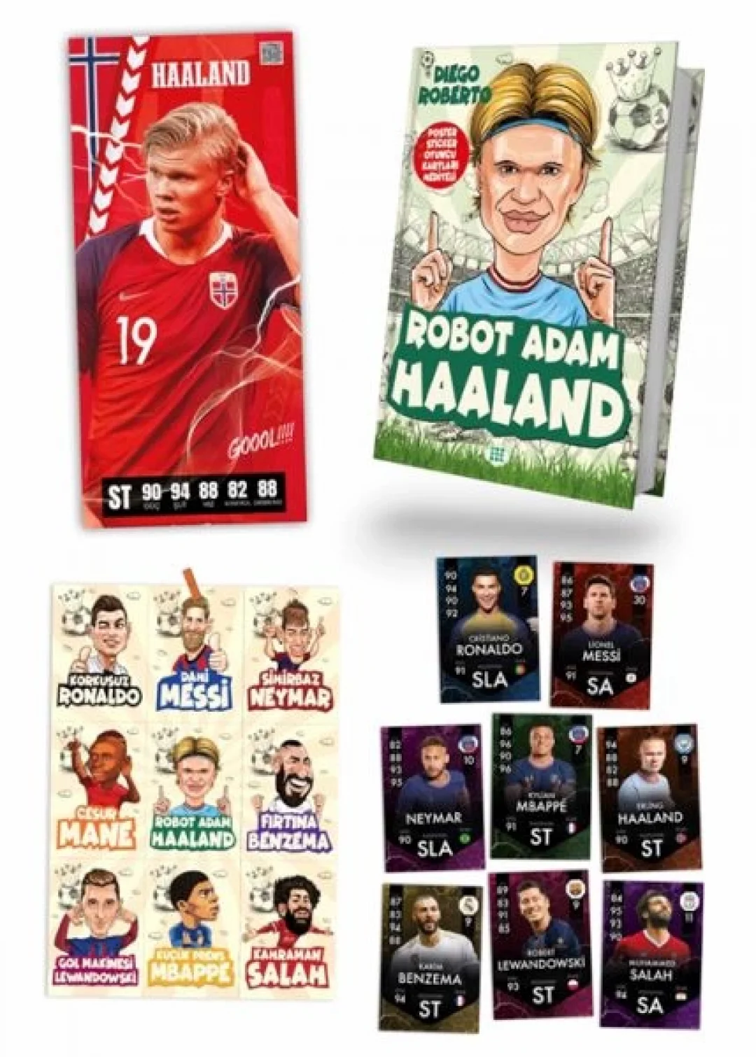 POSTER, STİCKER VE FUTBOLCU KARTLARI HEDİYELİ Futbolda zeki, büyük, hızlı, çok eğlenceli ve biraz tuhafım. Daha da önemlisi, gol atma becerisiyle yaşayan ve nefes alan bir “robot”um. Hayatını spora adamış ailemle birlikte ülkem Norveç’te başladı maceram. Ben gol atmak için doğmuşum! Tıpkı benim gibi futbolcu olan babam, bu hayattaki en büyük rol modelim ve yol göstericimdir. Onun başarılarına yetişebilmem için fırtına kadar hızlı olmam gerekiyor! Dünyadaki en iyi genç futbolculardan biri olarak gösterilmek, benim için büyük bir gurur. Daima disiplinli, planlı, azimli, hırslı ve fedakâr olmayı bilmelisin. Zirvede tek başına kaldığında kendinle yarışmaya devam etmen, senin daima orada kalmanı sağlayacaktır. İnan, çalış ve vazgeçme… Erling Haaland