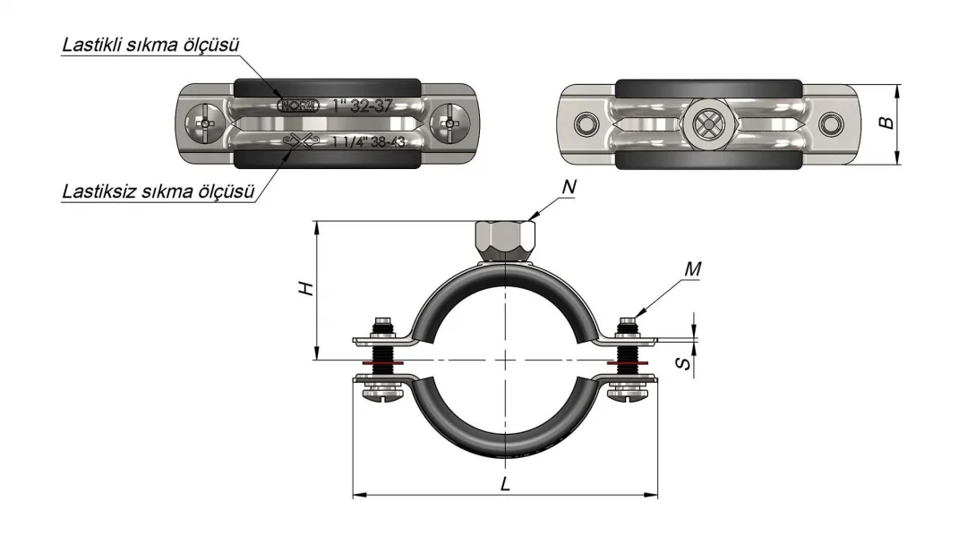 Mey İthalat® Somunlu Boru Kelepçesi 3'lük