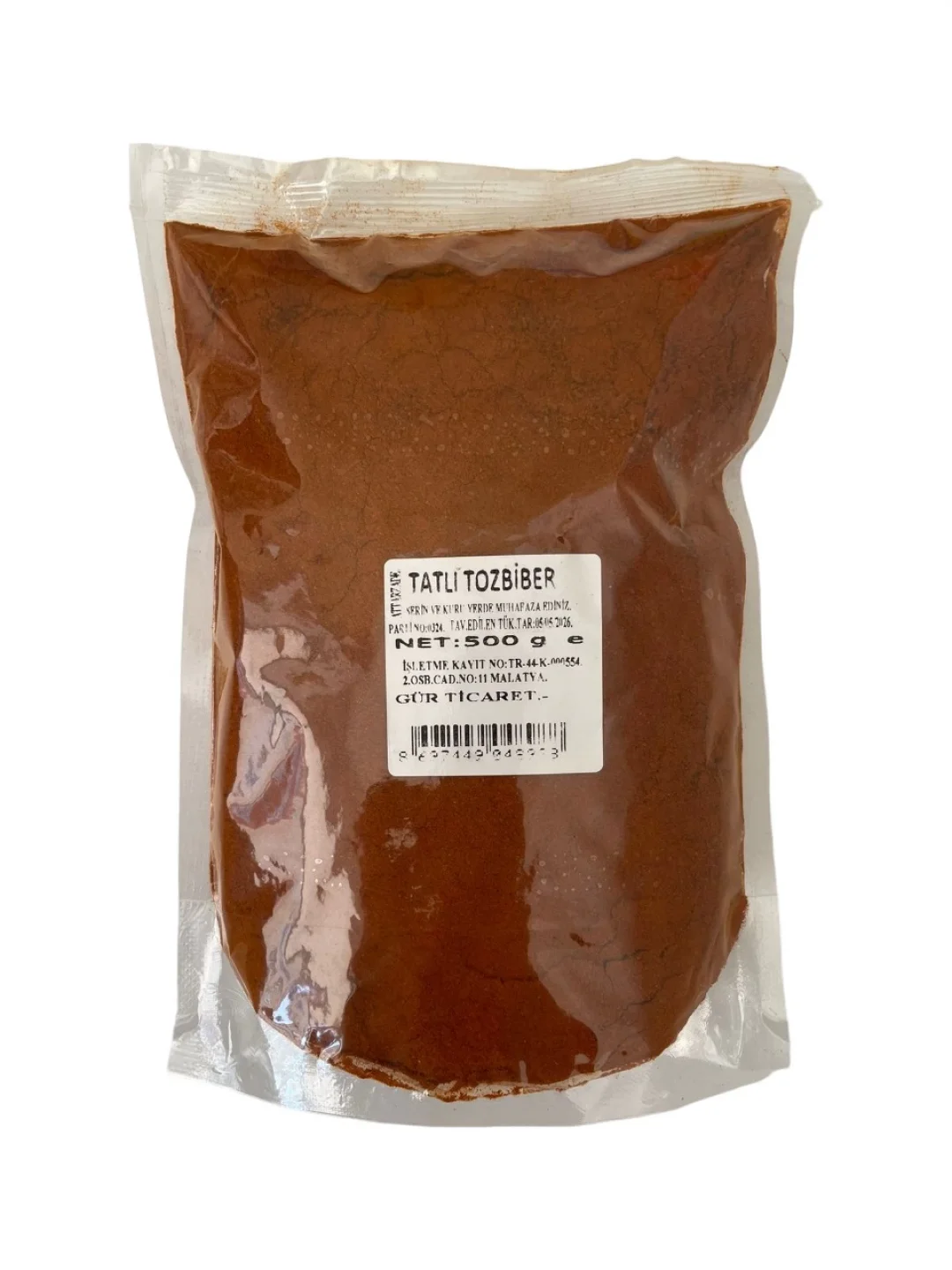 Tatlı toz biber, yemeklere renk ve hafif bir aroma katan vazgeçilmez baharatlardan biridir. Acı içermeyen bu ürün, özellikle et yemekleri, çorbalar, sebze yemekleri ve kahvaltılık karışımlarda tercih edilir.