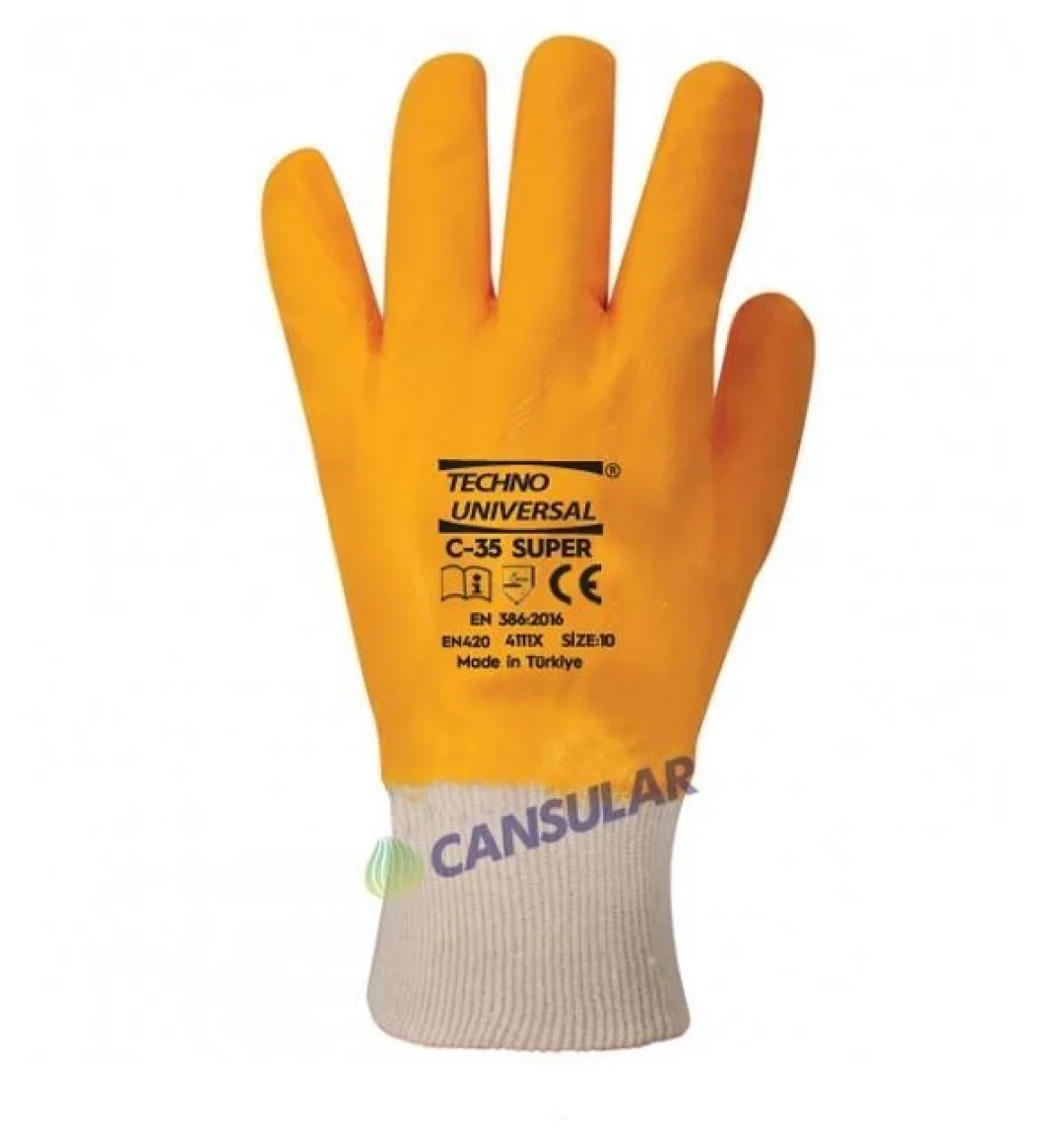 Eldivenler nitril kaplı, iç astarı 100% pamuktan örülmüş şardonlu kumaştır.