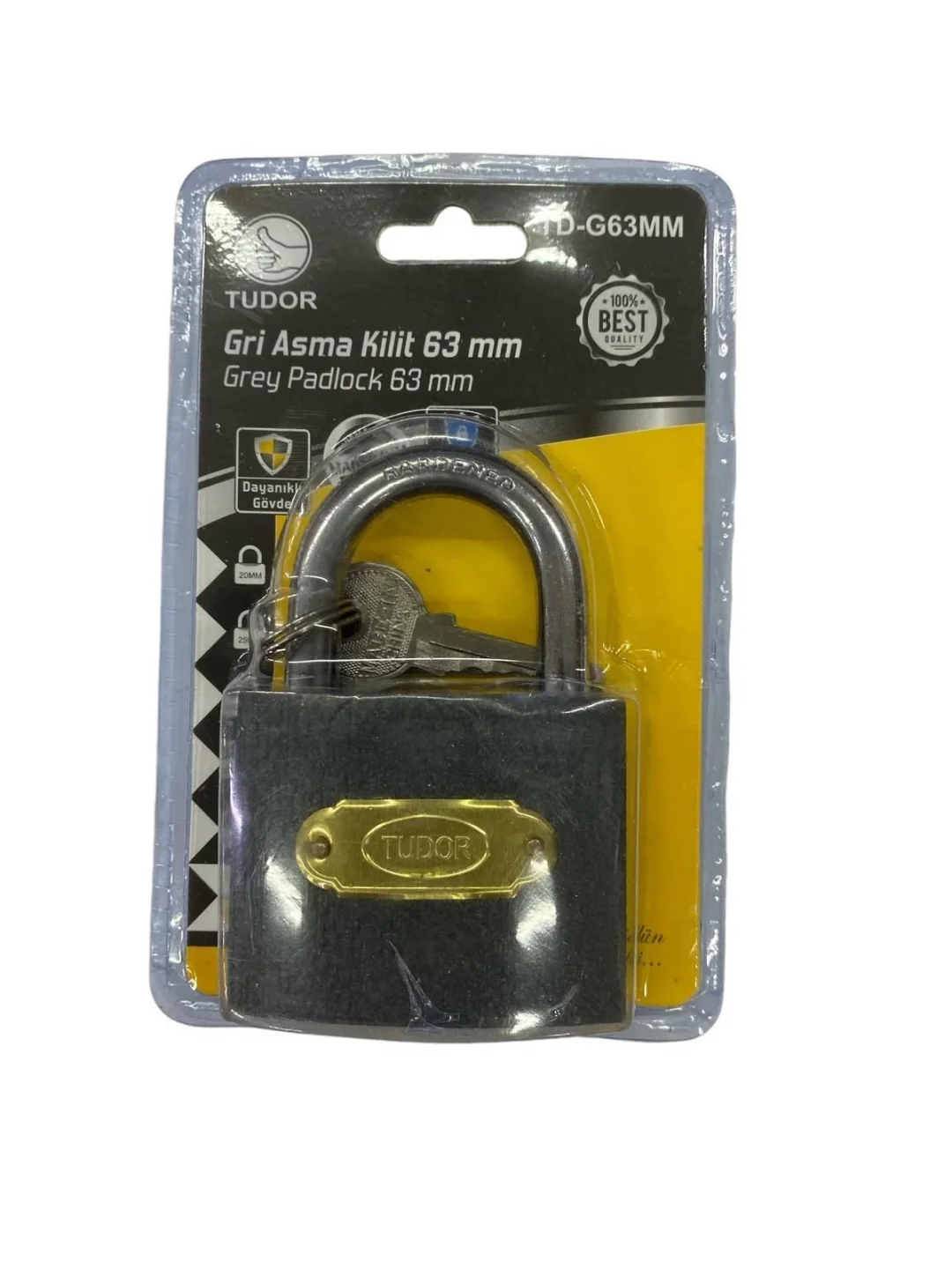 Tudor 63 mm Kısa Gri Asma KilitKorozyana karşı pirinç silindirKrom kaplama çelik kancaPaslanmaz yaylarDarbeye dayanıklı demir gövde