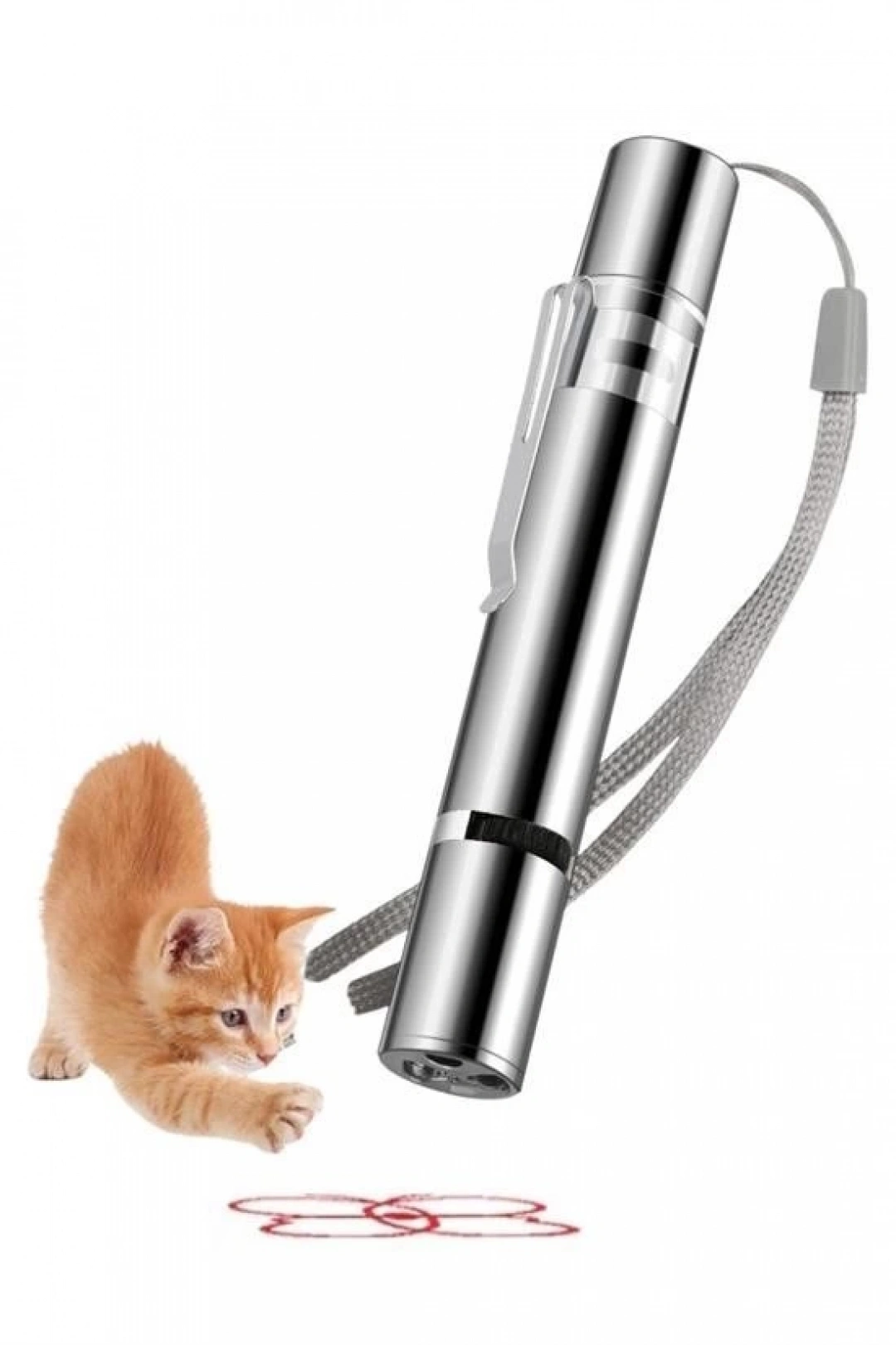 Usb İle Şarj Edilebilen 3 In 1 Kırmızı Işık + Beyaz Led Meşale Işık + Uv El Feneri Kedi Lazeri