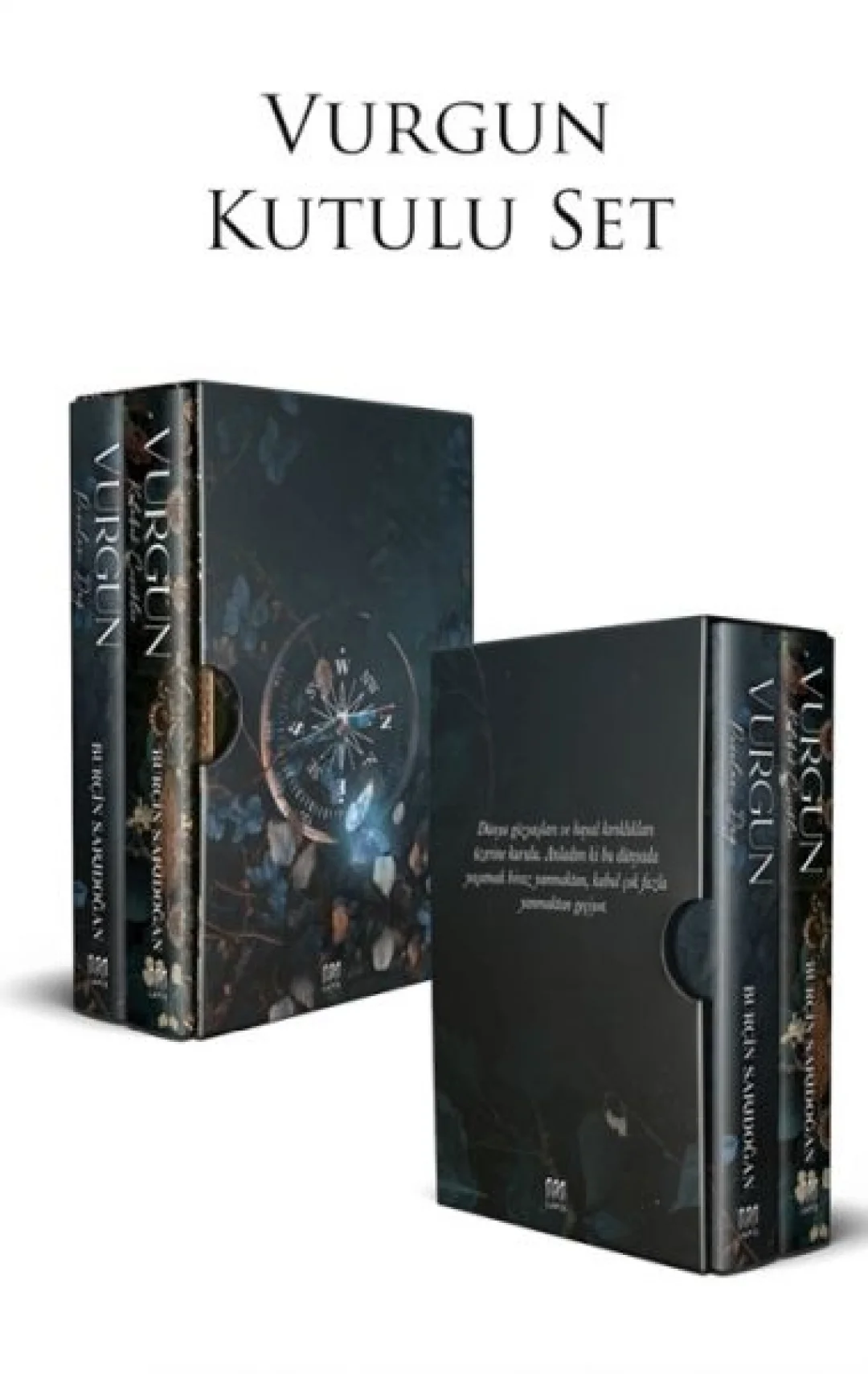 TANITIM YAZISI VURGUN - 1 KELEBEK ÇİÇEKLER / VURGUN - 2 PUSULASI DAĞ Kutu içeriği: 2 adet poster, 3 adet karakter kartı, bir ayraç, bir şekilli ayraç, iki adet ciltli kitap. VURGUN - 1 KELEBEK ÇİÇEKLER Nare Mihmallı, birçok şeyden mahrum kalan ve baba baskısıyla bu¨yu¨tu¨lmu¨ş genç bir kızdır. Babasının her ne kadar göz bebeği olarak bilinse de annesinden g.rdu¨ğu¨ sevgi eksiktir. Ailesinden gizli çalıştığı dernek u¨yeleriyle birlikte Karamus’taki köy okullarına yardıma giderken bir grup terörist tarafından kaçırılır ve gu¨nlerce esir kalırlar. Teröristlerin içine sızmış bir asker, ona kurtarılacaklarını söyler ama Nare bu sözlere tam olarak inanmaz. Bir olay sonucunda asker olduğunu söyleyen bu ajana karşı duyduğu gu¨ven tamamen sarsılır, böylece başının çaresine bakmaya karar verir. Kendini ve esir du¨şen diğer sivilleri kurtarmak için bir yol bulur ama bu yola girdiğinde, bir uçurum kenarında kendinin en yabancı hâliyle tanışır.